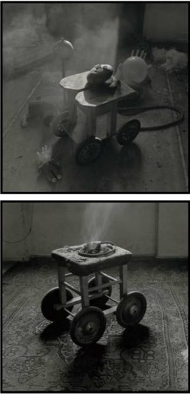 Jan Malý (1983) se zabývá černobílou i barevnou fotografií, počítačovou grafikou, vytváří prostorové objekty (dioramata, plastiky aj.) kombinující vlastní i nalezené fotografie, nalezené věci a materiály, často drobné reklamní předměty, hračky apod…